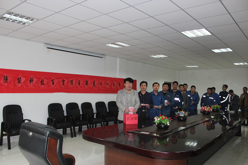 陕能科技全体员工积极响应集团公司部署,于9月17日分别在百吉、亿隆项目部开展了以"慈心一日捐,你我共参与"为主题的"慈心一日捐"活动。公司机关及项目部中层以上管理人员率先垂范带头捐款,全体员工本着"自愿捐赠,不分多少"的原则,为慈善事业奉献了自己的一份爱心。