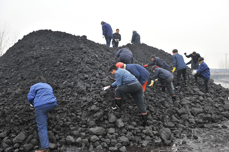 鹿洼煤矿:组织机关科室人员拣矸石保煤质增效益