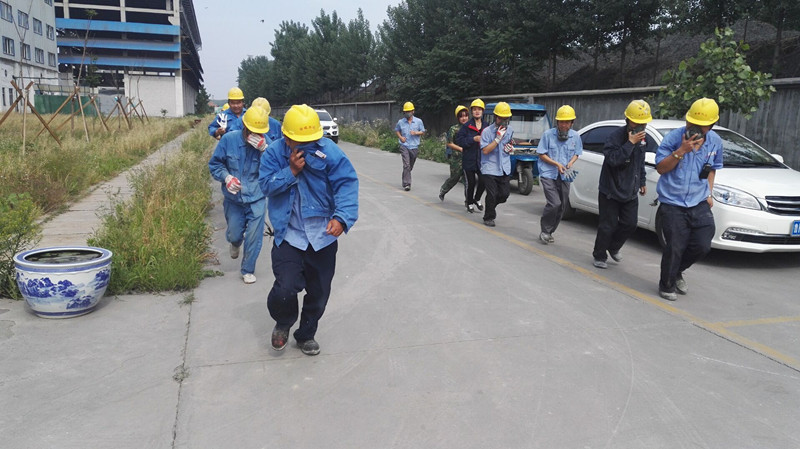 演练前,指挥人员结合实际,详细讲解了在生产或生活中出现火灾的应急逃生安全技巧。此次演练模拟了安全管理人员在厂区巡检时,发现四楼电线老化,引燃墙体复合板发生火灾,随后火势凶猛并迅速蔓延。安全管理人员立即向单位主要领导报告,单位主要领导接到报告后,立即启动应急疏散预案。应急小组在主要负责人的带领下,迅速赶赴事发地点,按照预案迅速展开疏散行动。演练时,参演员工在班长的组织下,立即关停运转设备等生产设施,同时为防止有毒气体伤害自己,迅速采用湿毛巾捂住口鼻,纷纷靠楼道右侧有序下楼,在短时间顺利完成了疏散,圆满完成了此次演练任务。
