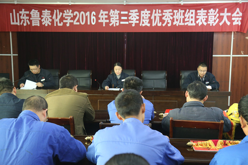 11月14日,乐鱼官网注册化学在公司三楼会议室召开2016年第三季度安全标准化班组建设总结会议。公司副总经理吴艳蕊出席会议,并对优秀班组进行表彰奖励。