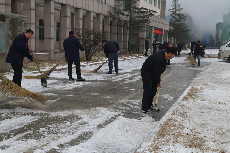 大家干劲十足,清雪场面热火朝天,经过2个多小时的齐心协力将积雪覆盖的道路清扫干净,保障了公司员工安全出行。