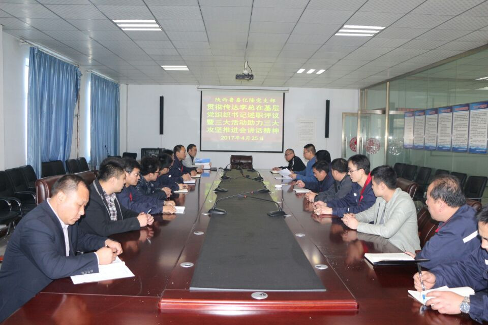 4月25日,陕西乐鱼官网注册党总支结合"两学一做"学习教育,组织各党支部认真学习集团公司基层党组织书记述职评议暨"三大活动"、助力"三大攻坚"推进会精神。
