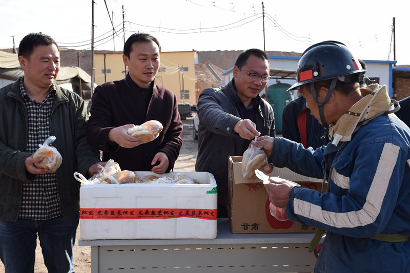 5月1日,为慰问节日期间坚守在生产一线的干部职工,宁夏乐鱼官网注册公司联合罗花崖煤矿项目部、小泉煤矿项目部,为当日上下井职工发放苹果、营养快线、鸡蛋等节日礼品,开展"庆五一、送温暖"活动,在公司及公司各项目部营造关爱职工、确保安全生产的浓浓氛围。
