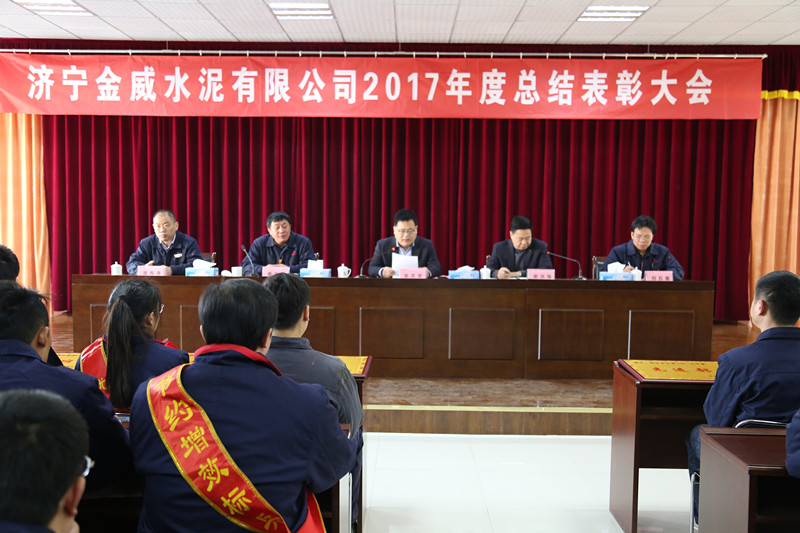 会议强调,2018年金威水泥工作以深入学习贯彻党的十九大精神为引领,以习近平新时代中国特色社会主义思想为指导,认真贯彻落实集团公司各项决策部署,按照真抓实干、巩固成果、稳中求进、持续提升的工作总基调,以全面加强党的建设为统领,围绕"安全高产、降本增效"两个中心,坚守"安全、环保、效益"三条生命线,以"精益管理、超越树标"为主线,以开展"精益管理提升年"活动为总抓手,狠抓"安全环保管理、精益管理、生产组织、成本管控、廉政建设"五个不放松,实现"项目建设、创新驱动"两个突破,做实"队伍 建设、和谐稳定、文化引领、督导考核 "四个保障,使整体工作再登台阶、再上水平,坚定不移完成全年目标任务! 最后张文学代表水泥公司感谢全体员工付出的辛勤劳动,向全体员工及家属致以新春祝福,号召全体干部职工继续发扬精诚团结、共同努力的精神,在2018年的工作中更加认真努力的为水泥公司的发展增添新的动力,共创2018新辉煌!