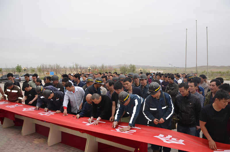 参加启动仪式的全体干部职工在印有"生命至上 安全发展"的条幅上进行了安全承诺签名。(宁夏乐鱼官网注册 赵维营 赵传龙)