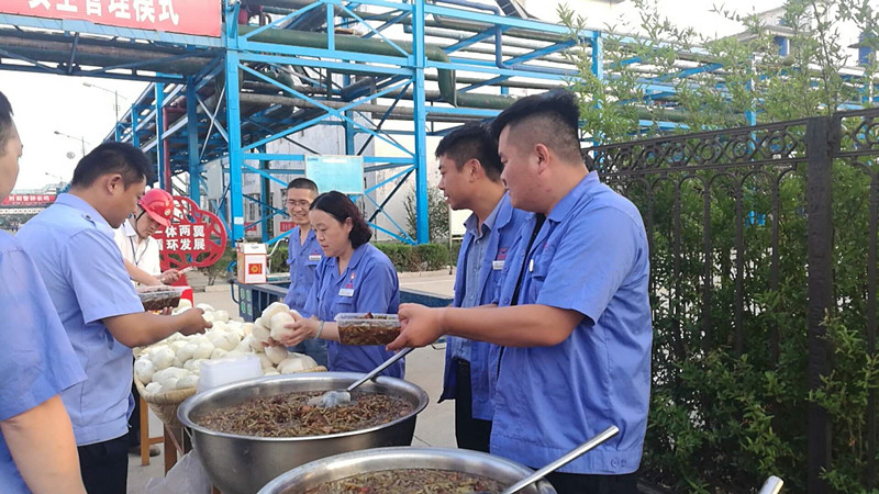 后勤保障"给力"。公司要求检修期间送餐到现场,安排非生产科室到食堂帮厨,后勤部门准备可口丰盛的饭菜,装盒装袋送到检修现场。一方面解决了检修人员在检修期间人多吃饭难的后顾之忧,另一方面也提高了凝聚力和积极性。公司的这一举措获得了员工的高度赞誉。检修期间天气炎热,为了防暑降温,公司在高温时段送水送雪糕,在主要路口设置取水点,提供绿豆水;准备了藿香正气水、风油精等防暑避蚊的药品,有效的保障了参与检修人员的健康,为检修顺利开展提供了可靠的保障。
