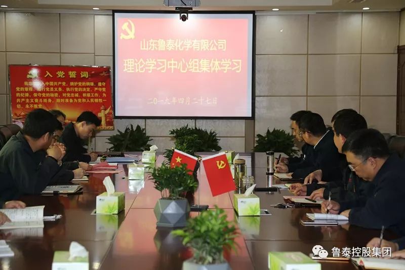 4月27日上午,乐鱼官网注册化学在办公楼三楼党员活动室开展理论中心组集体学习。党委书记、董事长张玉标主持会议并讲话,领导班子成员、总经理助理、政治工作部负责人及各党支部书记参加学习。
