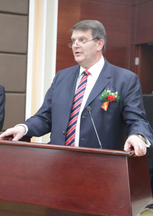 德国凯本公司首席执行官温浩辉先生介绍项目情况并表示,作为全球领先的高质量氯乙酸供应商,在山东省建设高质量的氯乙酸生产装置,对CABB 公司来讲,是一个非常重要的战略决策。金威华盛现存的20000吨氯乙酸装置加上新的投资将会使该公司拥有一家世界级的氯乙酸工厂,因为CABB带来的专有技术将会提升合资企业整体的质量水平,包括部分超高纯产品。