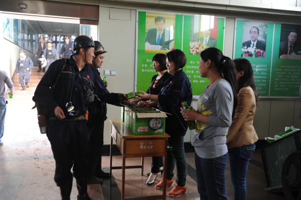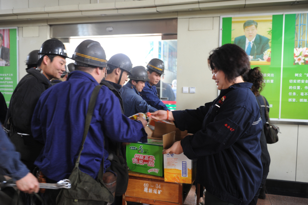 5月1日下午,鹿洼煤矿工会在井口举行了"庆五一,送温暖"活动。女工协管员们把一瓶瓶饮料放到上下班职工们手中,同时向矿工兄弟们送上了节日的祝福,并叮嘱他们平平安安上班,开开心心过节,全力抓好安全生产。当天共发放饮料600余瓶。