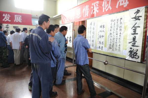 安全文化周期间,在矿安全信息大厅举办了安全文化书画及警示教育展,展览分三个部分,学习先进部分:主要包括我矿安全管理理念、班组长亲人安全寄语等内容;警钟长鸣部分;展示全国2013年煤矿重特大事故,警示职工吸取惨痛教训,强化责任,遵章守纪,夯实安全基础;安全作品部分:展出职工安全书法、绘画等作品,富有较强的感染和启迪作用,先后多次组织职工进行观展,得到了广大干部职工的好评。鹿洼煤矿还举办了安全月征文活动,此次征文以安全生产为切入点,以"强化安全基础,推动安全发展"为主题,设定了"安全文化在我心中"、"安全文化在安全生产中的作用"、"违章后的思考"等征文题目,职工也可自拟题目,有较强的灵活性和针对性,各基层单位职工踊跃投稿,共征集文章100余篇。鹿洼煤矿还在井口举办了安全知识有奖问答活动。准备安全知识问题,在井口现场问答上下井的职工,现场发放小奖品,进一步提升了安全文化建设水平,强化职工安全意识,宣传矿井安全知识,激发了职工的学习热情,为矿井安全生产营造了良好的学习氛围。