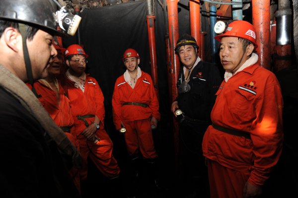 到矿后,乔志猛书记直接更换工作服下井,来到采二工区13下07综采工作面,在与群监员张淑洋的交谈中,乔志猛书记询问了群监员在班组安全生产中发挥的作用和群监员的津贴发放情况。在工作面溜尾,乔志猛书记与采二工区区长刘志斌和当班班长康云亲切交谈,叮嘱他们越是在煤炭市场不好的情况下,越是要抓好安全生产工作,要求群监员在班组安全生产中发挥好作用,在班组建设中还要发挥好每个职工的作用,积极征求他们的意见,征集合理化建议;要求基层区队抓好节能降耗工作,开展好"双增双节"活动;现现场管理人员不光要会干,还得善于总结,特别是群监工作在班组建设和安全管理中的作用等方面,要形成好的经验。