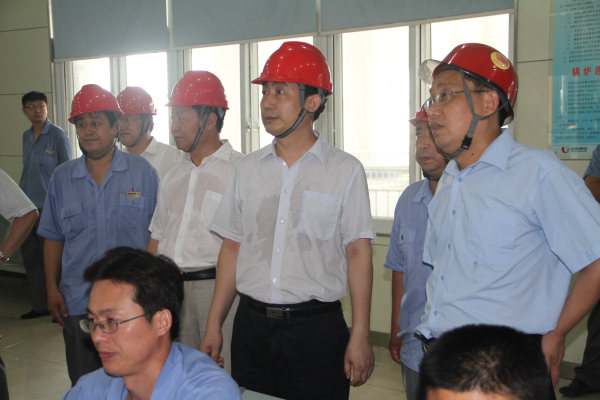 顶烈日、冒酷暑,济能发集团公司董事长虢洪增在薛培华副总经理的陪同下,深入金威煤电化工分公司和金威热电公司各生产车间及项目建设现场,仔细查看了现场管理情况,了解生产工艺流程。