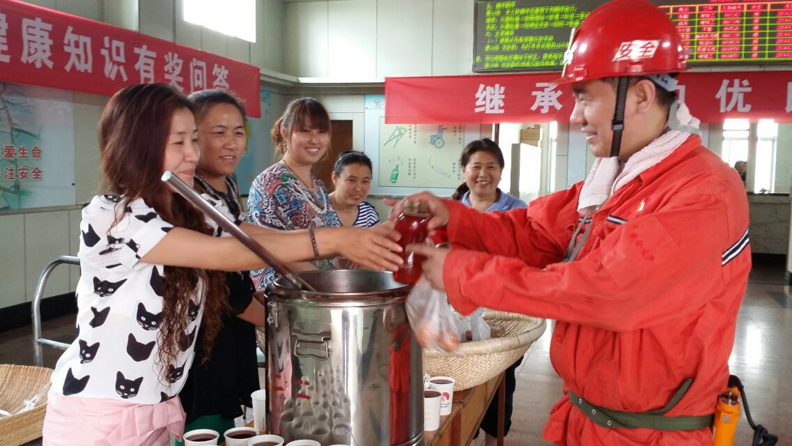矿工们接过礼包,脸上露出了幸福满意的笑容;矿工们吃着粽子、喝着绿豆汤,聆听着女工协管员们真诚的话语,纷纷表示,要牢记"安全第一"的思想,各自坚守在自己的工作岗位上,上标准岗、干放心活,严格遵守煤矿操作规程,以优异的安全佳绩回报亲人和领导的期望与厚爱。