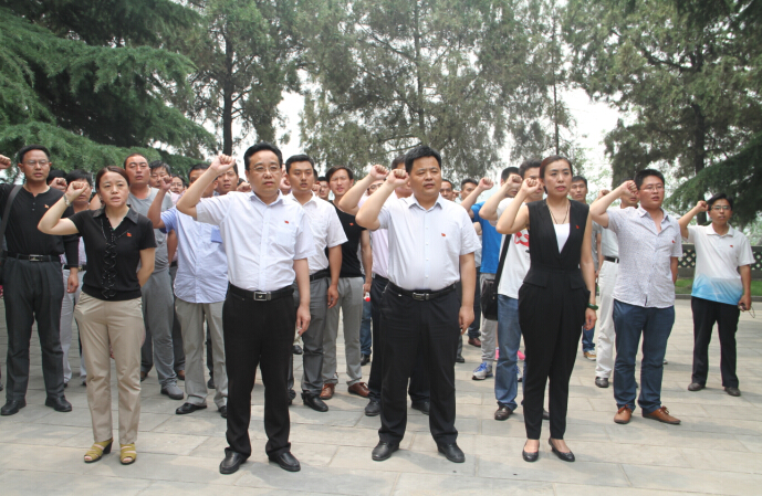 在鲁西南战役纪念馆革命英雄纪念碑前,面对鲜红的党旗,申玉海带领大家一字一句重温了入党誓词,表达了对党和祖国的无限忠诚和热爱。随后,还参观了鲁西南战役纪念馆,伴随着讲解员的解说,观看了历史图片、战争文物、战斗场景雕塑等,使大家受到了一次生动的爱国主义教育和深刻的心灵洗礼。