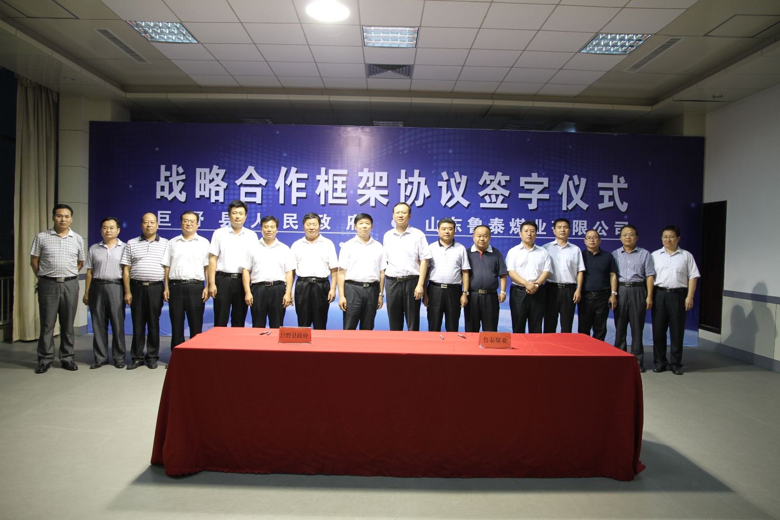 9月11日下午,乐鱼官网注册煤业公司与巨野县人民政府在公司机关七楼会议室举行了战略合作框架协议签订仪式。乐鱼官网注册煤业公司总经理李合军代表公司与巨野县人民政府签订了战略合作框架协议。