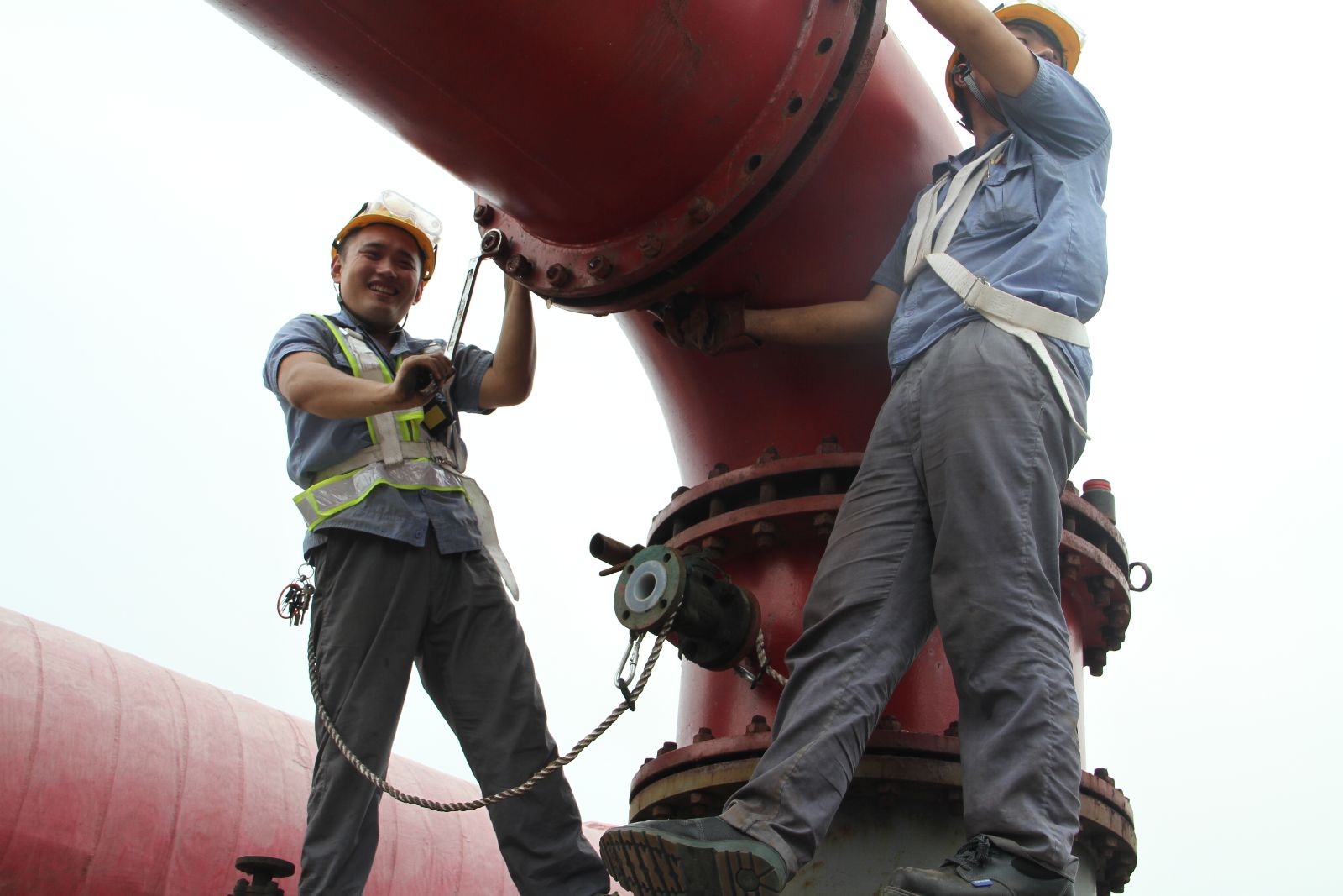 22日凌晨0:00,电解开始降电流,至早晨7:30系统全部停车,检修工作全面铺开。期间,各单位有组织、有计划地进行检修,按照检修方案要求,统一指挥,统一协调,确保检修进度和质量,注意节约,注重环保,确保安全顺利的完成检修任务。此次检修,化工分公司完成盐水换热器改造、中间槽碱泵迁移、液氯贮槽单体贮槽年检、电石料仓顶分料皮带卸料方式改造,7℃水15℃水系统改造等282项检修项目,热电公司完成锅炉水冷壁检查修补、煤气系统检查维护、煤泥系统改造等18项任务,水泥公司完成浓缩机溢流堰找平、直泄筛入料管线改造等8项检修任务。各检修项目通过三级验收,检修工作消除6项A/B级隐患,将大大提升了设备健康水平,为装置长周期安全运行提供了保障。