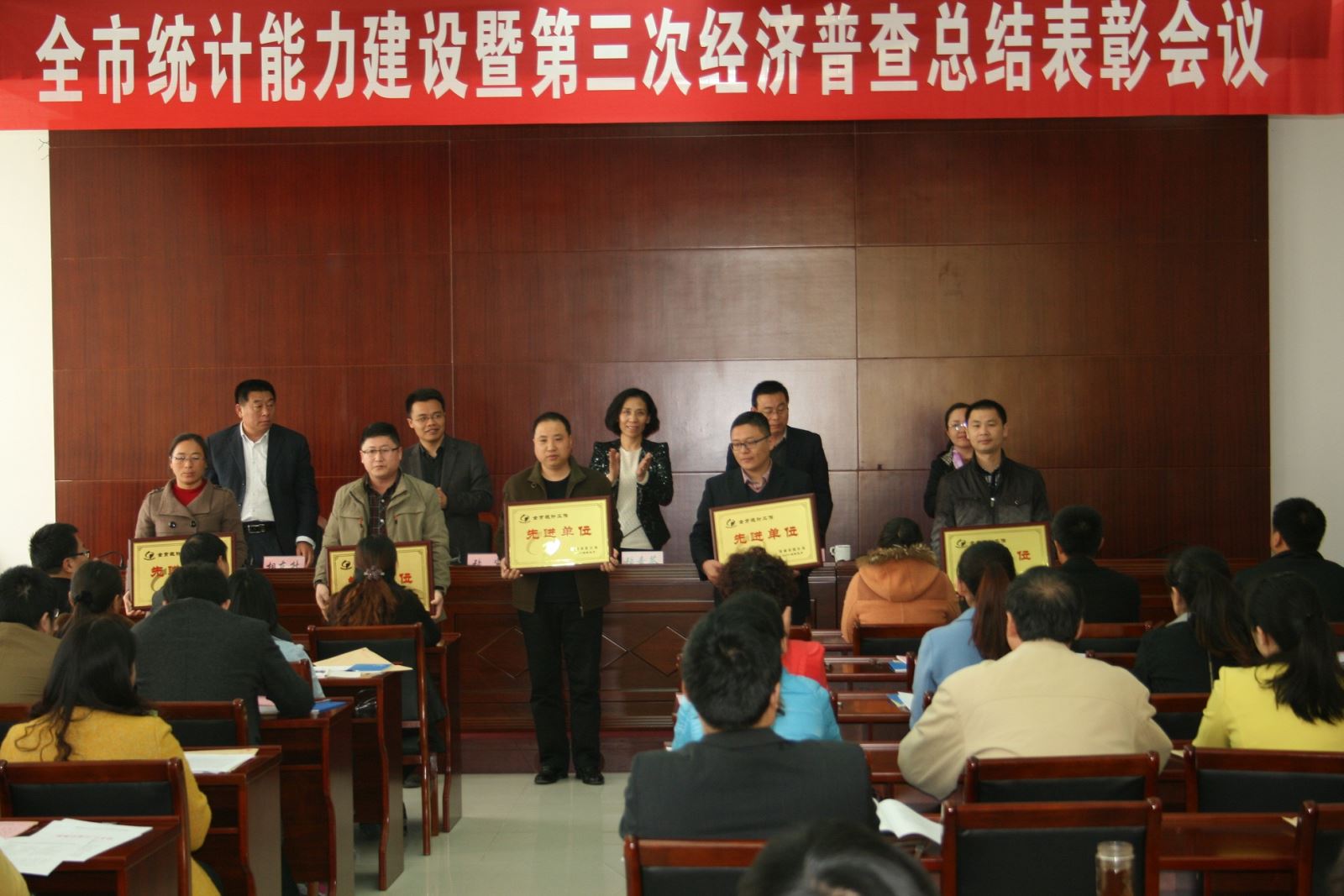 4月16日上午9点,邹城市统计能力建设暨第三次经济普查总结表彰会议在邹城市行政服务中心第七会议室举行,会议总结了邹城市2014年度和第三次经济普查统计工作,表彰了先进集体和个人,传达了省、市统计工作会议主要精神。太平煤矿荣获"全市统计工作先进单位"称号。邹城市统计局全体成员、各镇街统计站长、部分市直部门、企事业单位统计人员参加了此次会议。