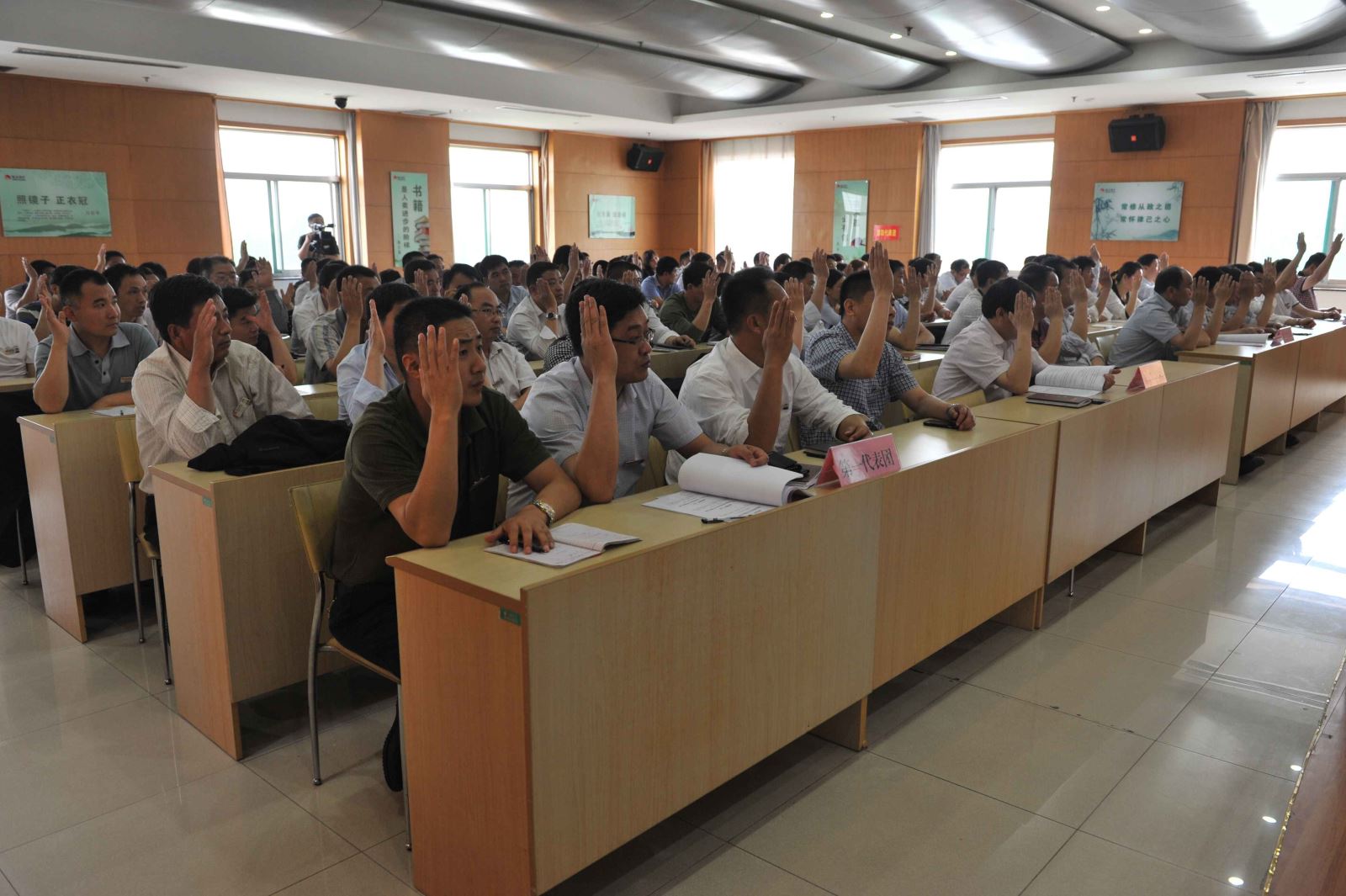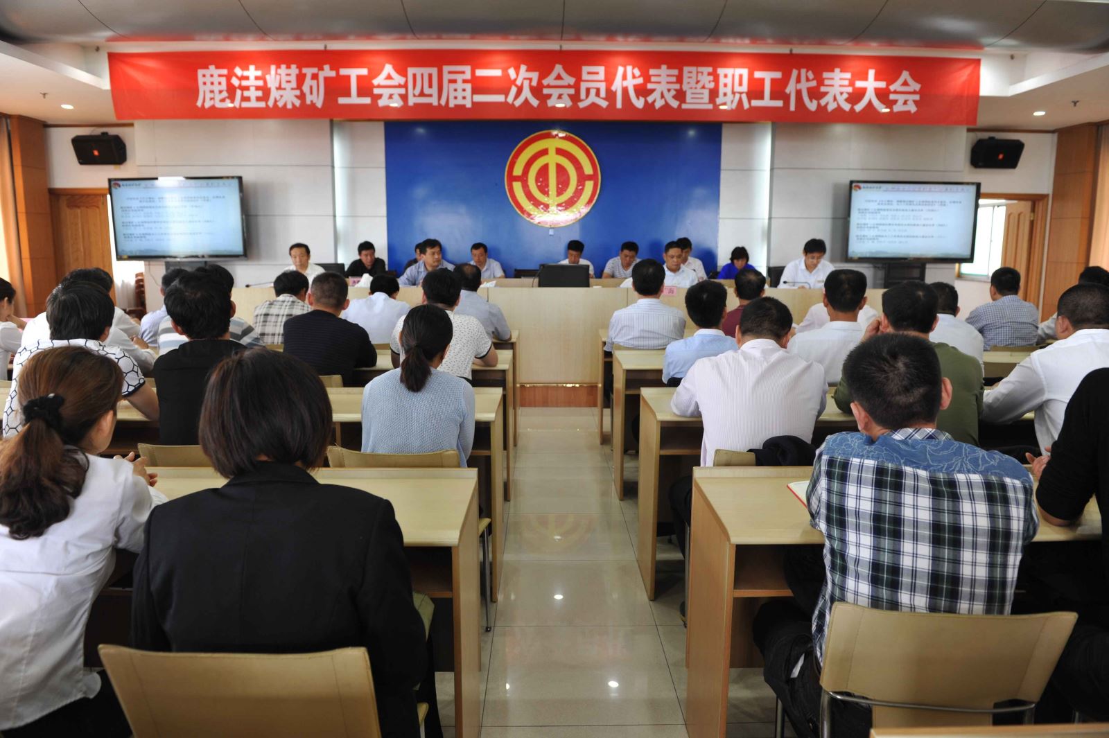 鹿洼煤矿党委书记刘岭主持了会议,鱼台县总工会张建民主席到会并致辞,整个大会充满了民主、公平、和谐的氛围。上午十一时,大会圆满完成了各项议程,在雄壮的国际歌声中胜利闭幕。