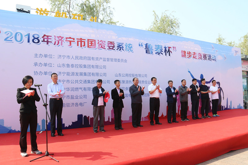 何锡明宣布"乐鱼官网注册杯"济宁市国资委系统健步走竞赛活动开始。