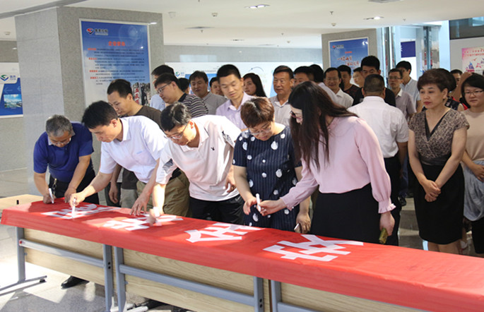 6月1日上午,集团公司机关在办公楼三楼大厅举行2018年"安全生产月"活动启动仪式。总经理李合军、副总经理关延忠、董事会秘书肖作飞出席启动仪式,并与参加启动仪式的全体人员进行了集体安全宣誓,并在写有"生命至上、安全发展"的条幅上进行了安全签名。