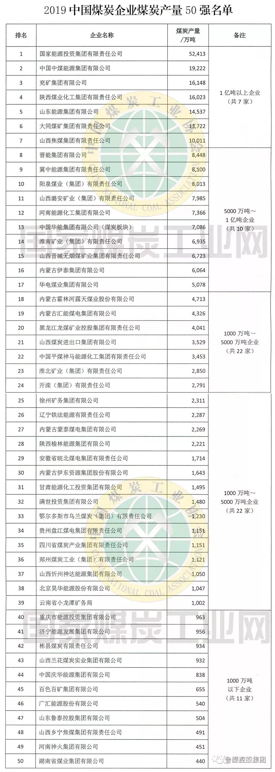 日前,中国煤炭工业协会发布了2019中国煤炭产量50强榜单,乐鱼官网注册控股集团以年产量504万吨位居第47位。这是集团公司继上榜2018中国煤炭产量50强榜单后,排名上升三位,再次上榜中国煤炭产量50强。