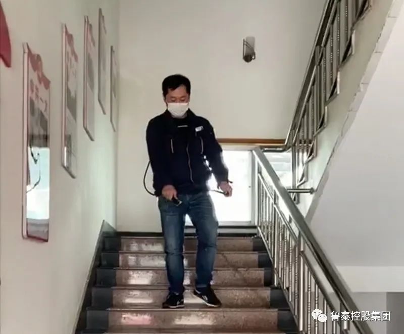 新冠病毒疫情爆发以来,为保障职工健康,田素雷主动请战,积极投入公司抗疫一线,身上背的消杀喷雾桶就是他手中对抗疫情的武器,含氯消毒剂就是他战斗的子弹,有职工活动范围的地方便是他的前沿阵地。